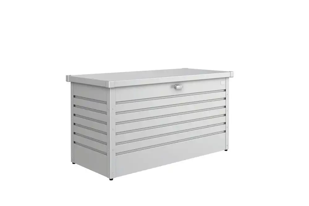 Hyndeboks af varmgalvaniseret polyamidcoatet stål, der er ideel til opbevaring af havehynder.