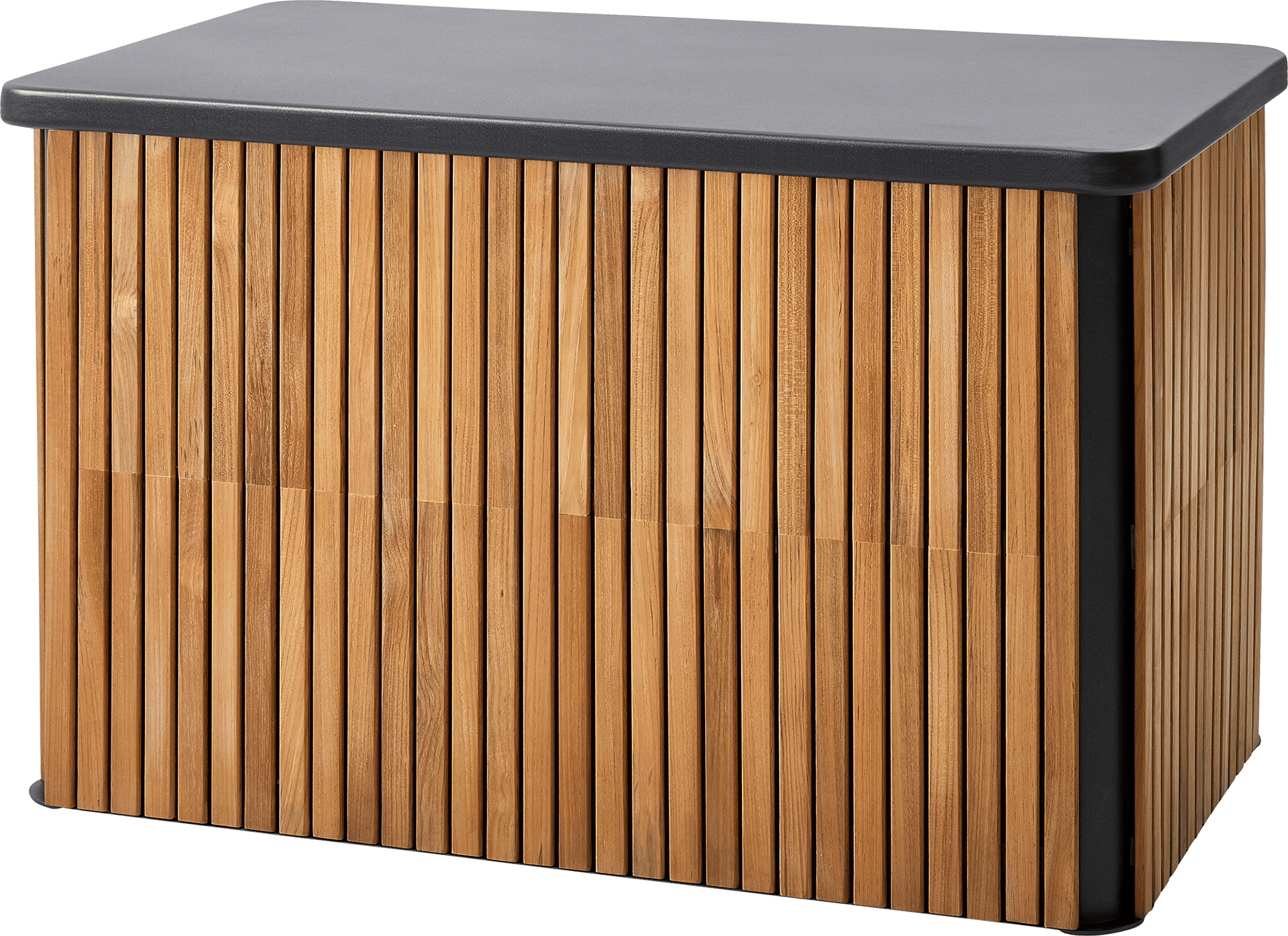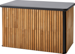 Combine er en serie af praktiske og rummelige opbevaringsbokse i en smuk lavagrå farve. De er lavet af holdbart pulverlakeret aluminium og har lameller af teaktræ. Hyndeboksen kan bruges både til opbevaring af hynder, blomster eller andre ting. Teaklamellerne og det slanke aluminiumsdesign skaber et unikt udseende, som passer perfekt til de fleste udendørs områder.