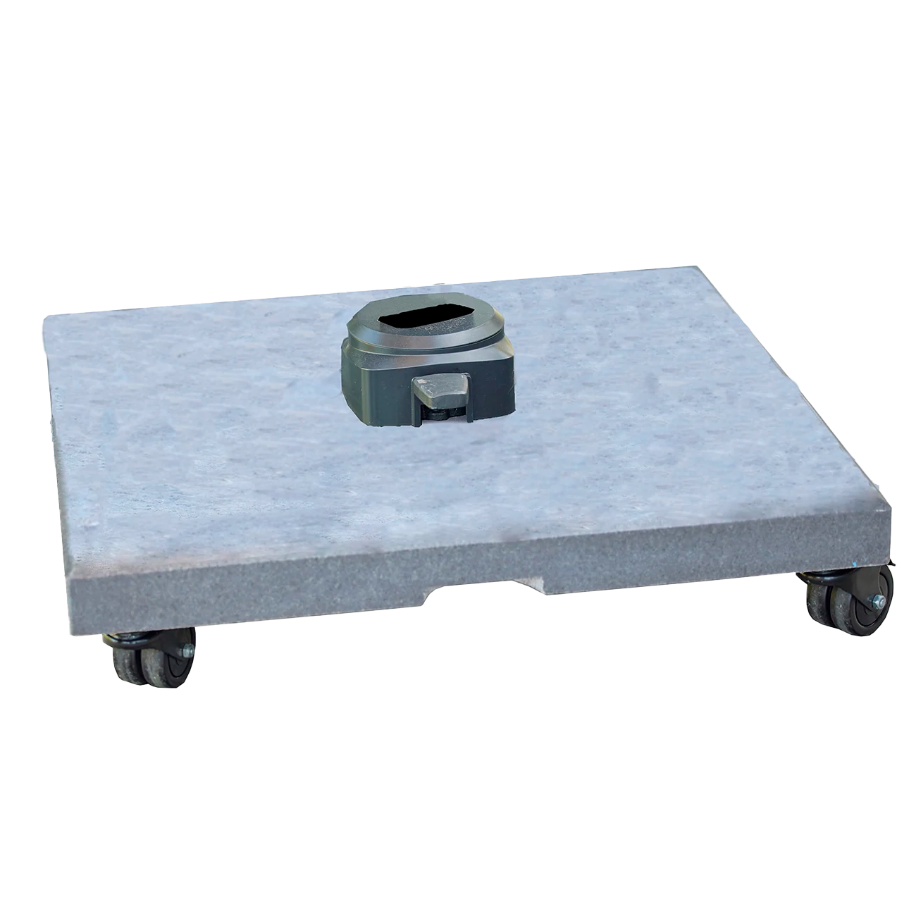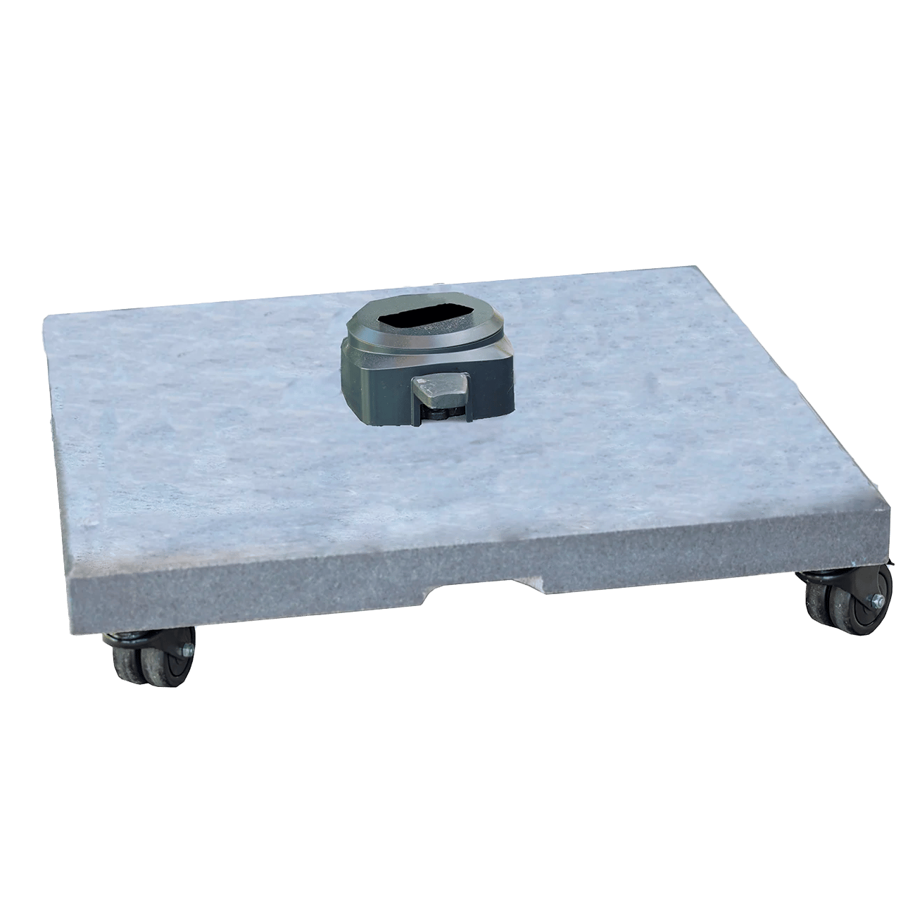 Denne praktiske parasolfod med hjul gør det nemmere for dig at flytte på din parasol. Den har et moderne og tidløst design, så den passer perfekt til de fleste uderum. Foden er lavet af granit og passer til alle Hyde luxe parasoller.