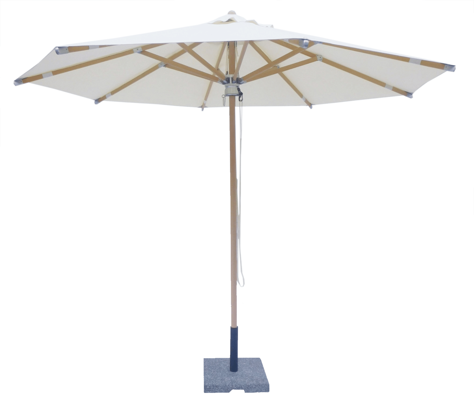Cannes parasollen er en flot luksusparasol med naturfarvet dug i olifin, som giver mindre UV og er modstandsdygtig overfor snavs og misfarvning. Parasollen har hel stok og vippefunktion, så du nemt kan vippe parasollen for bedre skygge, når solen står lavt. Der er dobbelt snoretræk, kraftige ruskindsforstækninger og luftudtag i toppen. Stokken er i kraftigt træ og måler 48 mm og passer dermed til de fleste parasolfødder (købes separat).