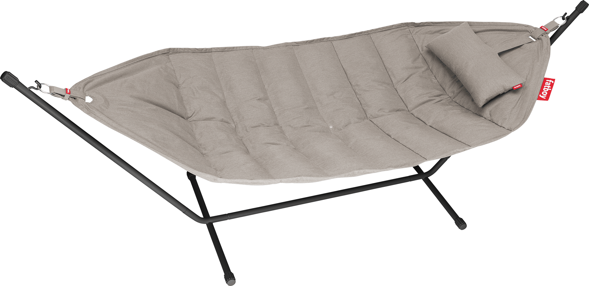 Fatboy Headdemock Superb er en komfortabel, udendørs hængekøje, der har plads til to personer (op til 150 kg). Takket være det praktiske stativ har du ikke brug for vægge eller træer – du kan bare anbringe den hvor du vil. Og da det unikke Superb-stof er vand- og snavsafvisende, UV-bestandigt og farvefast, behøver du ikke engang at vente til sommeren. Hvis du dog stadig vil opbevare denne udendørs hængekøje af vejen, er det også meget enkelt. Headdemock Superb fås i forskellige versioner og i forskellige farver, så du finder altid en hængekøje, der passer perfekt i din have. Headdemock Superb er fyldt med 100% polyesterfiberfyld og leveres i en dejlig, rød bæretaske.