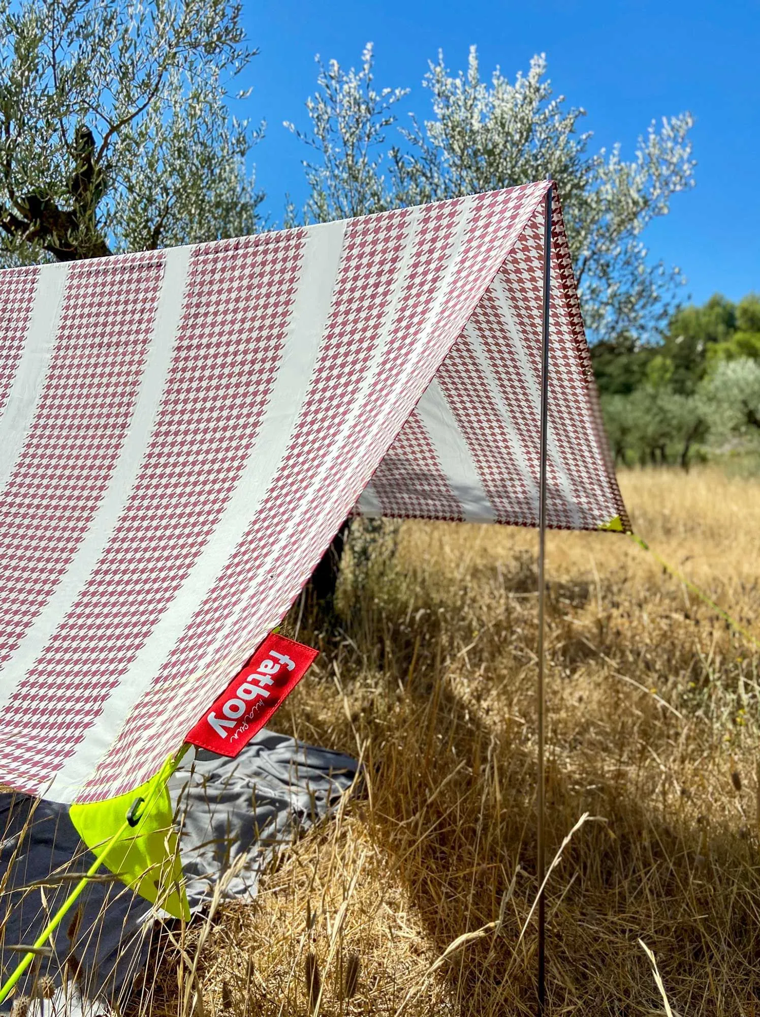 Fatboy Miasun er et let, sammenfoldeligt strandtelt. Det passer perfekt i din (strand-)taske, vejer kun 1,2 kg og kan rumme to voksne og to børn. Dertil kommer det muntre og stilfulde design og den superenkle foldemekanisme, og du har fundet det ideelle, sammenfoldelige strandtelt. Denne mekanisme giver dig mulighed for at lave en skyggefuld oase inden for kun to minutter. Bomuldslærredet kan placeres på tre forskellige måder, men lader stadig en dejlig brise slippe igennem og. Størrelsen på strandteltet, når det er foldet, er 40 x 20 x 5 cm, og når det stilles op, er det ikke mindre end 150 x 220 cm.