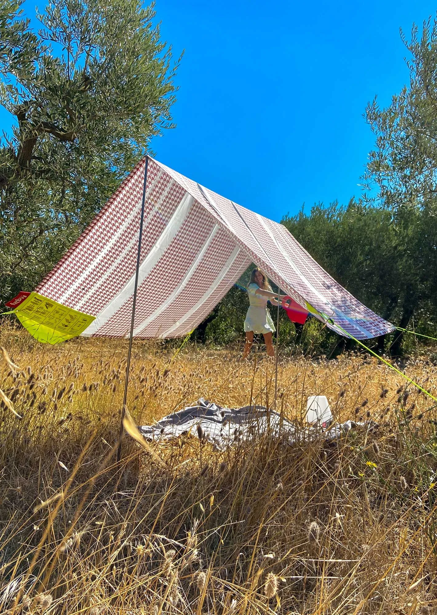 | Materiale | Bomuldslærred med stangsæt af aluminium og jordspyd |