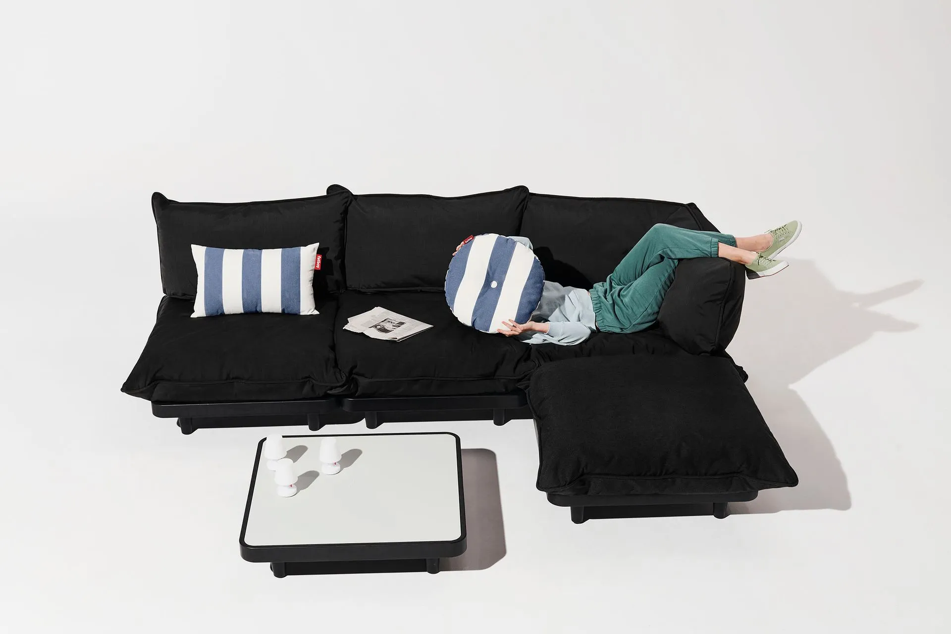 Slappe af, spise, drikke, solbade: alt er muligt med Paletti lounge-sættet, der er inspireret af en pallebundramme. Vælg de elementer, du har brug for, og lav dit eget lounge-sæt, som passer lige til dine behov. Du kan lave alt fra en intim loungesofa til et komplet havesæt med en hjørnesofa, bord og separate stole – mulighederne er uendelige, og du kan nemt rykke rundt på elementerne, når du fx får gæster. Paletti byder på førsteklasses kvalitet, og modulerne er lavet af genbrugsmaterialer så meget som muligt. Bagpuderne er fyldt med overskydende fyldskum, og bundrammen indeholder genanvendt plast. Resten af loungesættet er også produceret bæredygtigt.