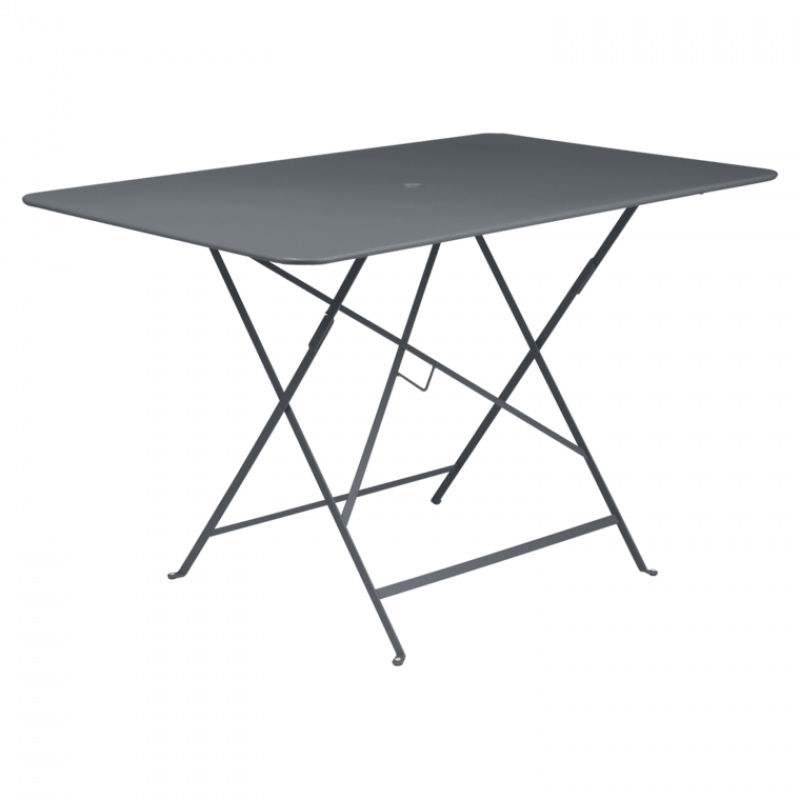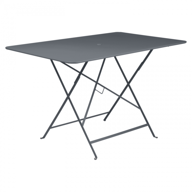 Sammenklappeligt cafébord i antracit. Bordet har en stålramme og er behandlet, så det tåler udendørs brug. Bordet har en anti-UV lakering, som gør farven mere holdbar.