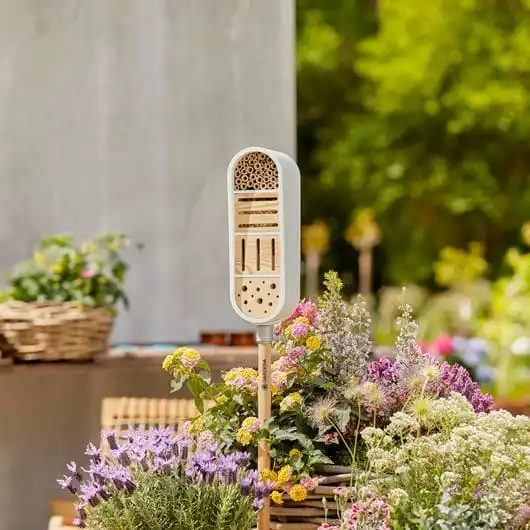 GARDENA ClickUp! InsektHotel er ikke kun til stor nytte for insekter som vilde bier, mariehøns og sommerfugle men er også en stilfuld og moderne tilføjelse til din have! Mange insektarter har stigende problemer i deres naturlige habitater til at rede, dvale eller fodre. Med redningshjælpen fra GARDENA ClickUp! Bidrager du til bevarelsen af den oprindelige mangfoldighed af arter.