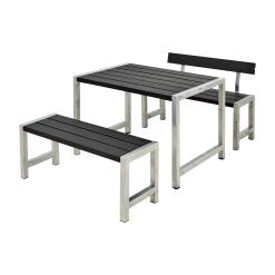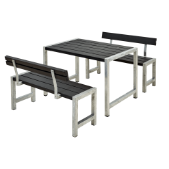 PLUS CAFE PLANKESÆT 127CM SORT BORD+2 BÆNKE MED RYGLÆN USAMLET