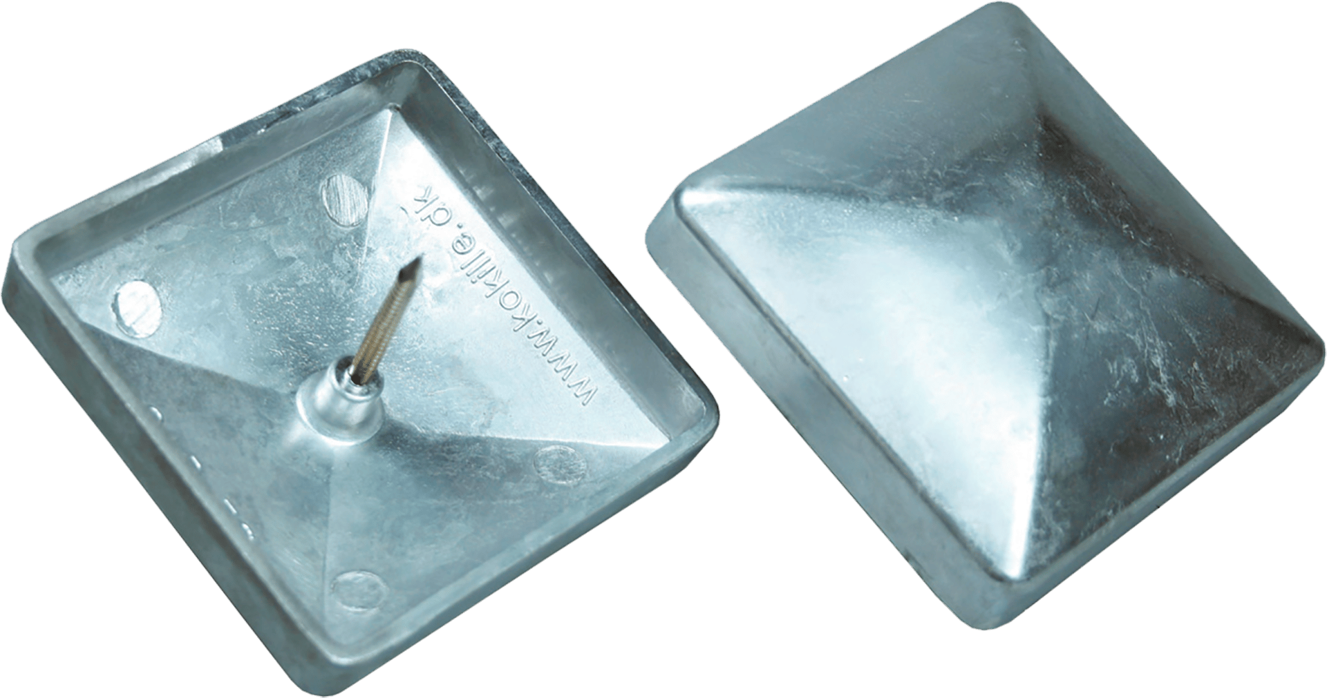 Stolpetoppen fra Kokille forener smukt design med en praktisk løsning. Toppen er fremstillet i aluminium monteret med et søm for nem og hurtig montering. Anvendelse: CAP stolpehatte/stolpehætter anvendes som afslutning på firkantede stolper, og forlænger derved stolpens levetid samtidig med, at den tilfører stolpen en flot afslutning.