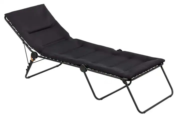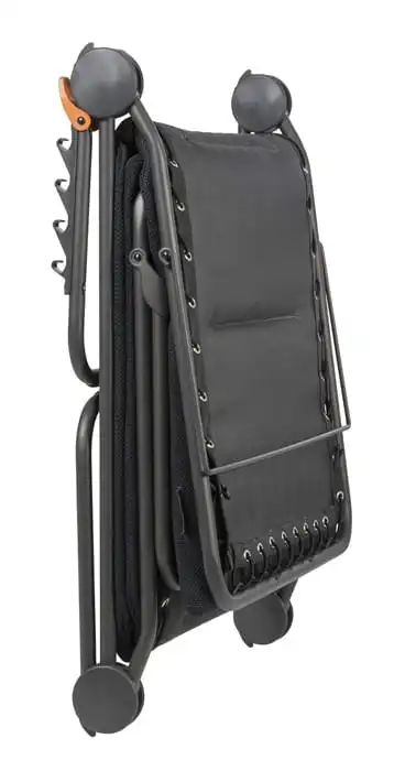 Solseng med 3 ben. Stel i Ø20 mm. Stål rør. Regulærbrt ryglæn med 4 postitioner med anti klemme / slagfast sikkerhedslås. Anti tip sikkerheds system på ryglæn. Aftageligt betræk med elastikker. Air Comfort materialet er en kombination af åndbare og gennemtrængelige materialer. Materialet holder ikke på vandet, og er hurtigt tørrende. Et blødt og comfortabelt matierale, der giver en blød og behagelig sidde komfort. Sammenklappelig til 17 cm. i bredden. Udslået mål: 70 x 36/91 x 201