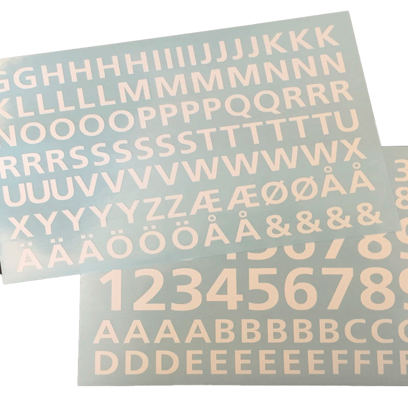 Selvklæbende foliebogstaver og tal til postkasser eller andre overflader.