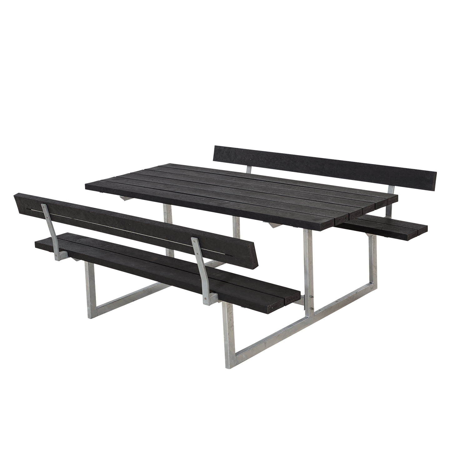 Basic Bord/Bænkesæt m/2 ryglæn – 177 cm – RePlast – Sort