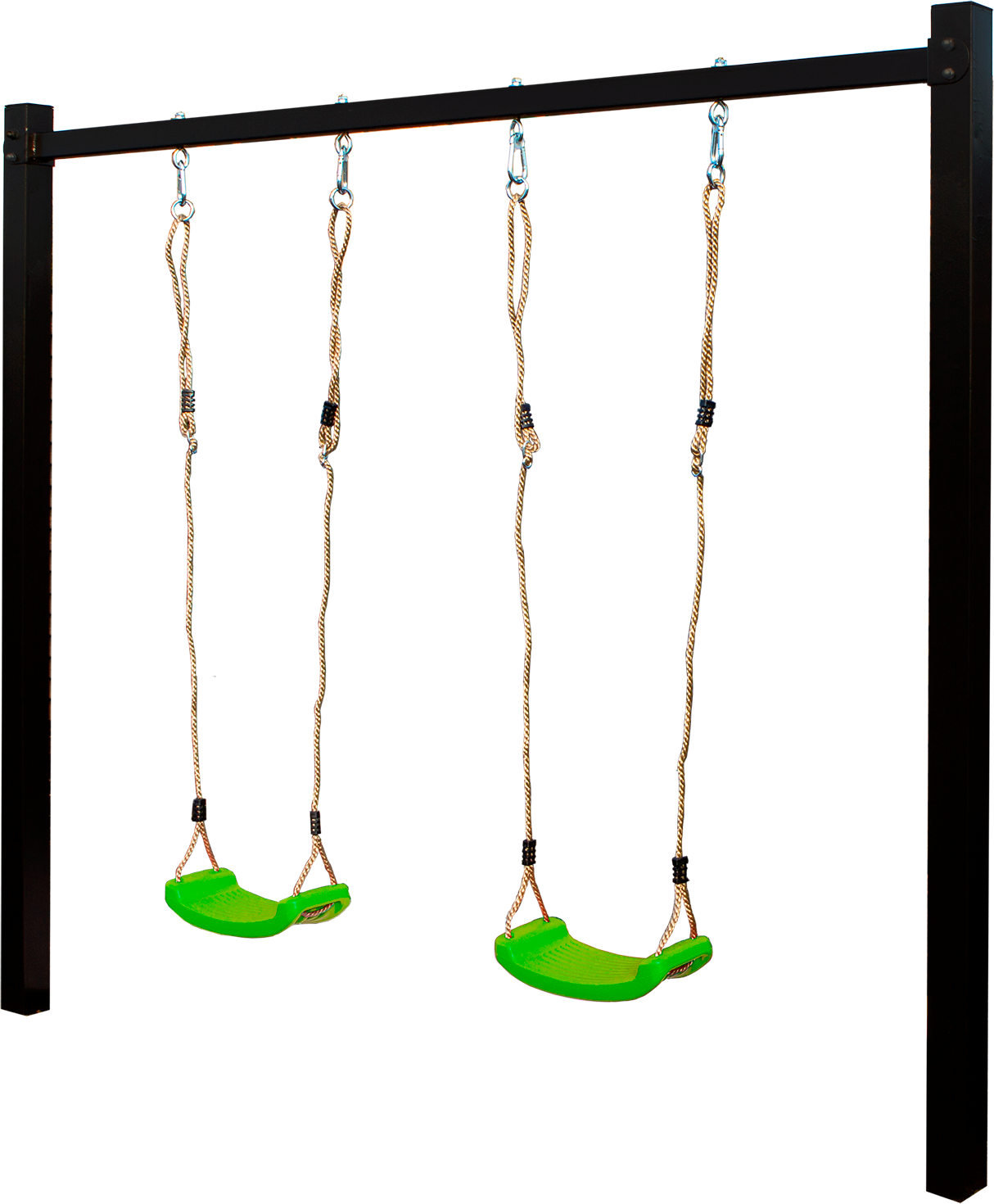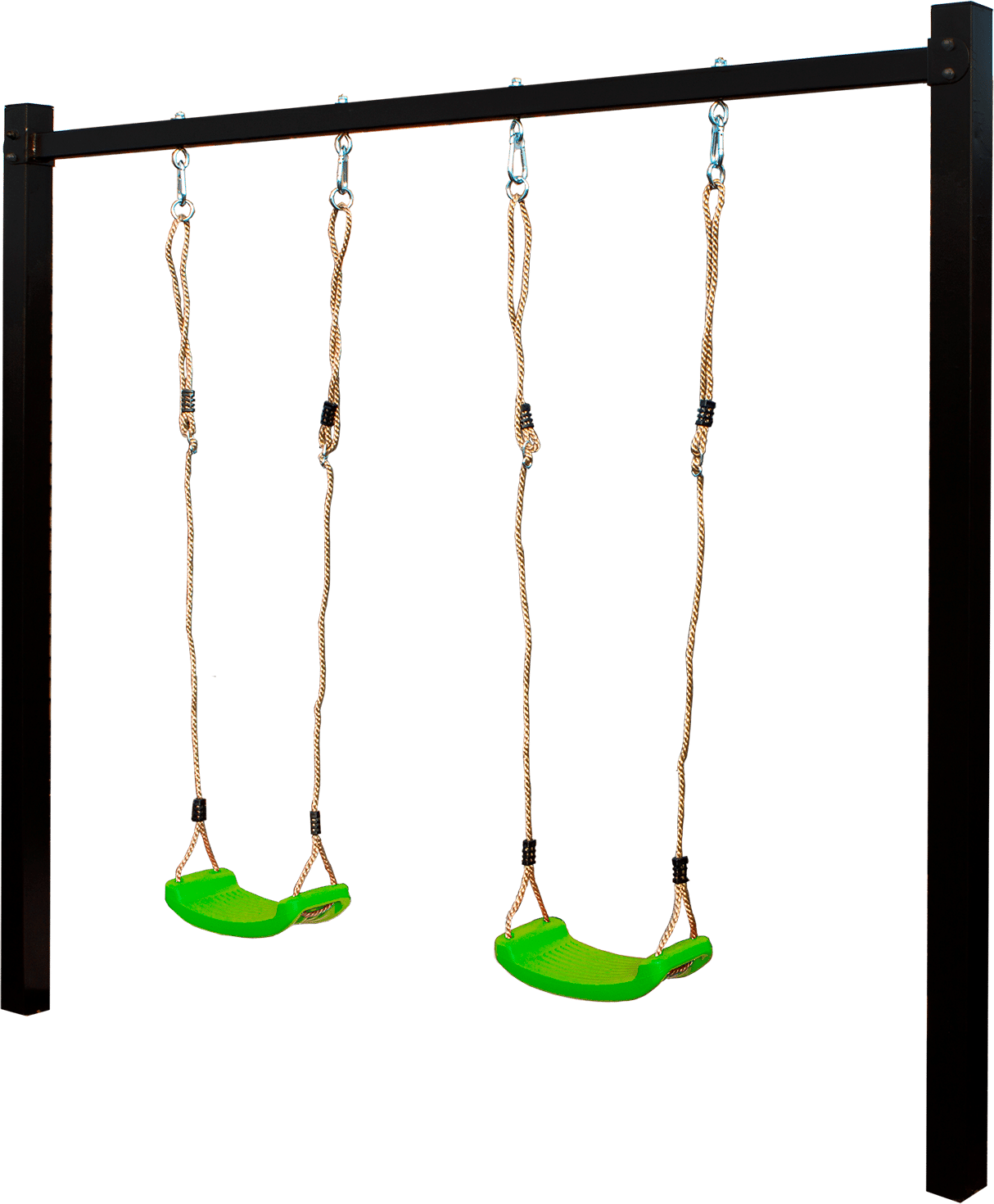 Gyngestativ i stål inkl. 2 grønne gyngesæder – Pulverlakeret sort