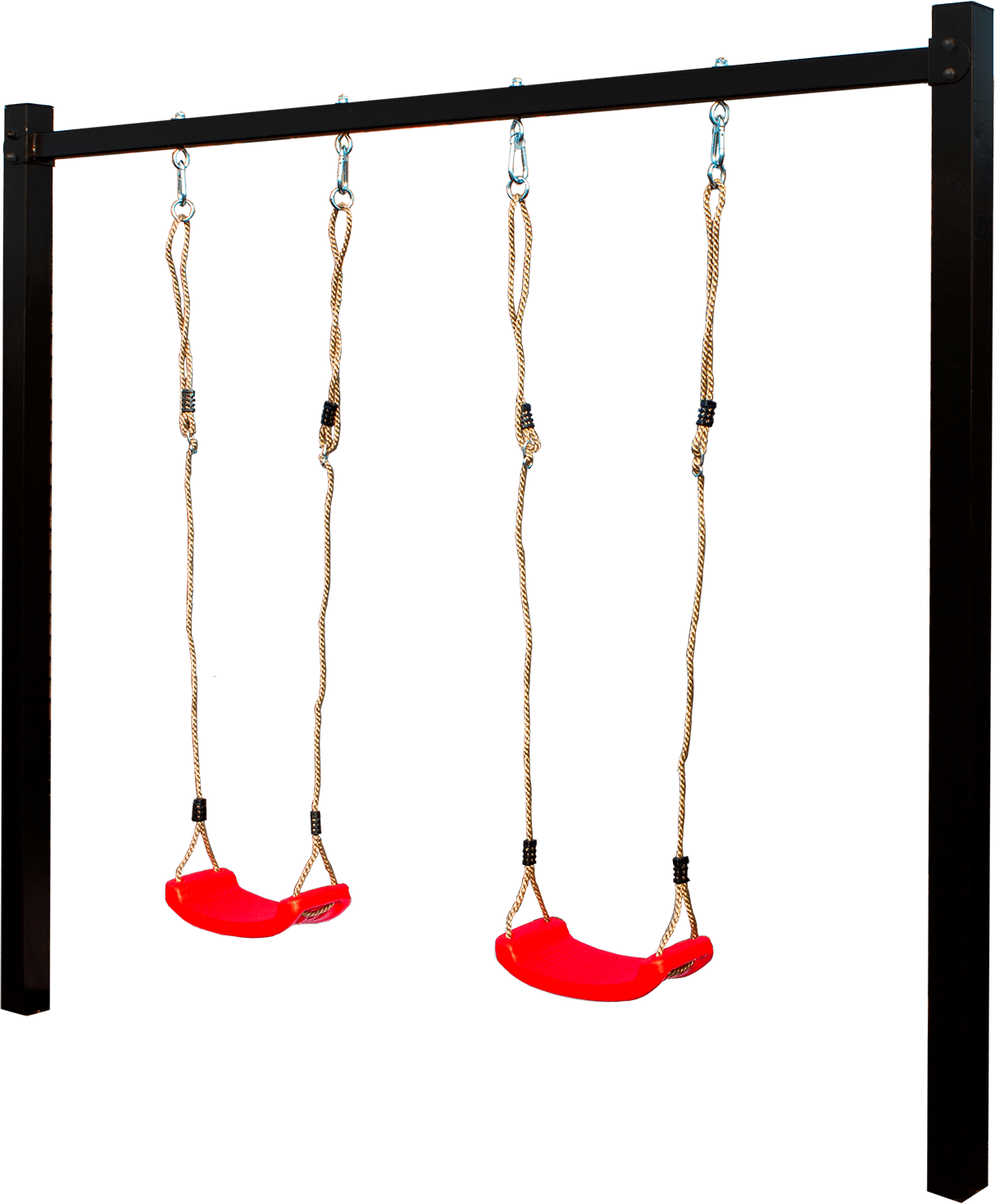 Gyngestativ i stål inkl. 2 røde gyngesæder – Pulverlakeret sort