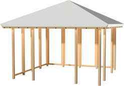 Stolper/overligger og 2 stk. Cubic samlebeslag (inkl. skruer) samt 4 stk. jordankre.