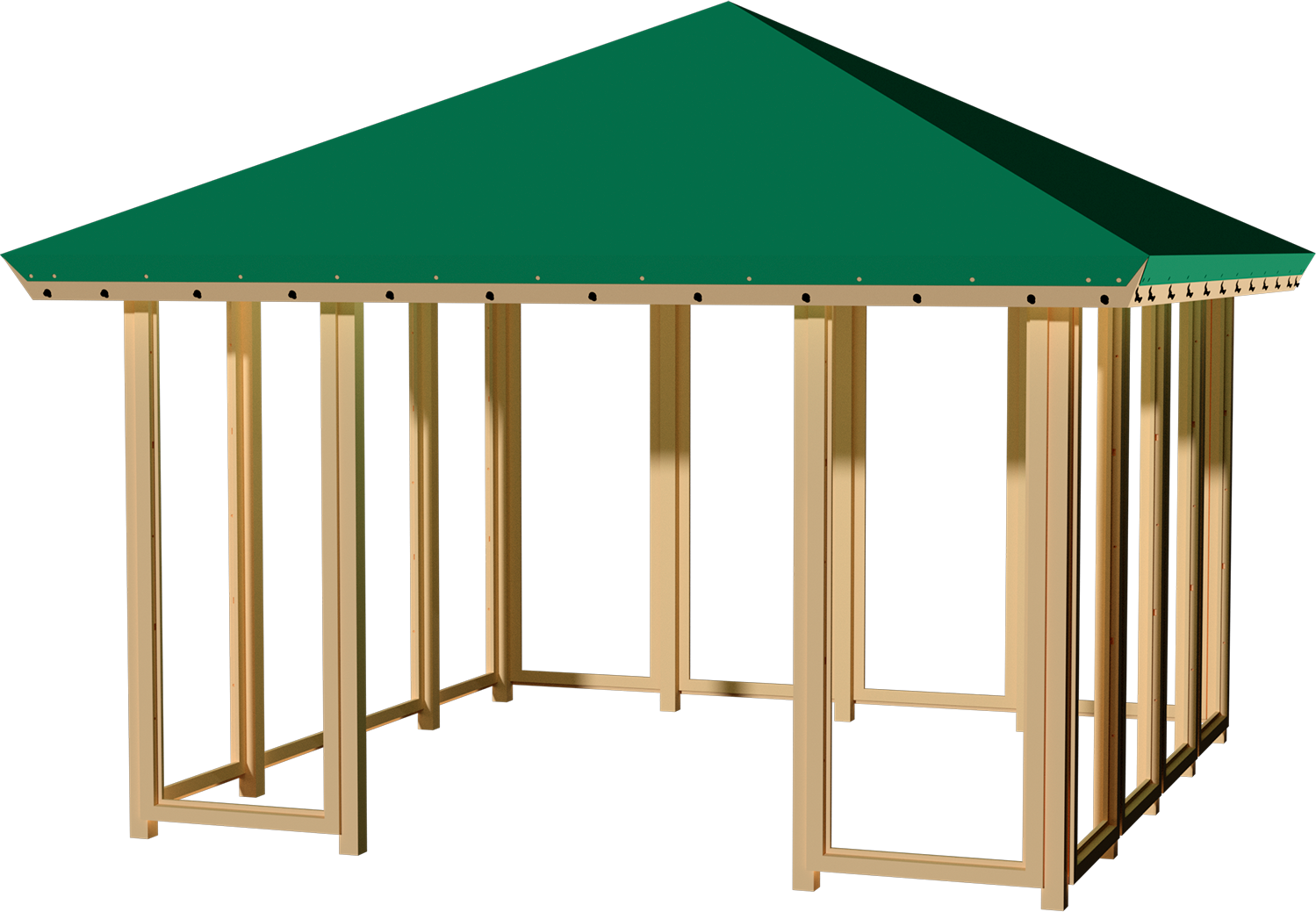 Denne model består af grundsæt og pavillonelementer til at lukke 3½ side, og leveres med grøn tagdug.