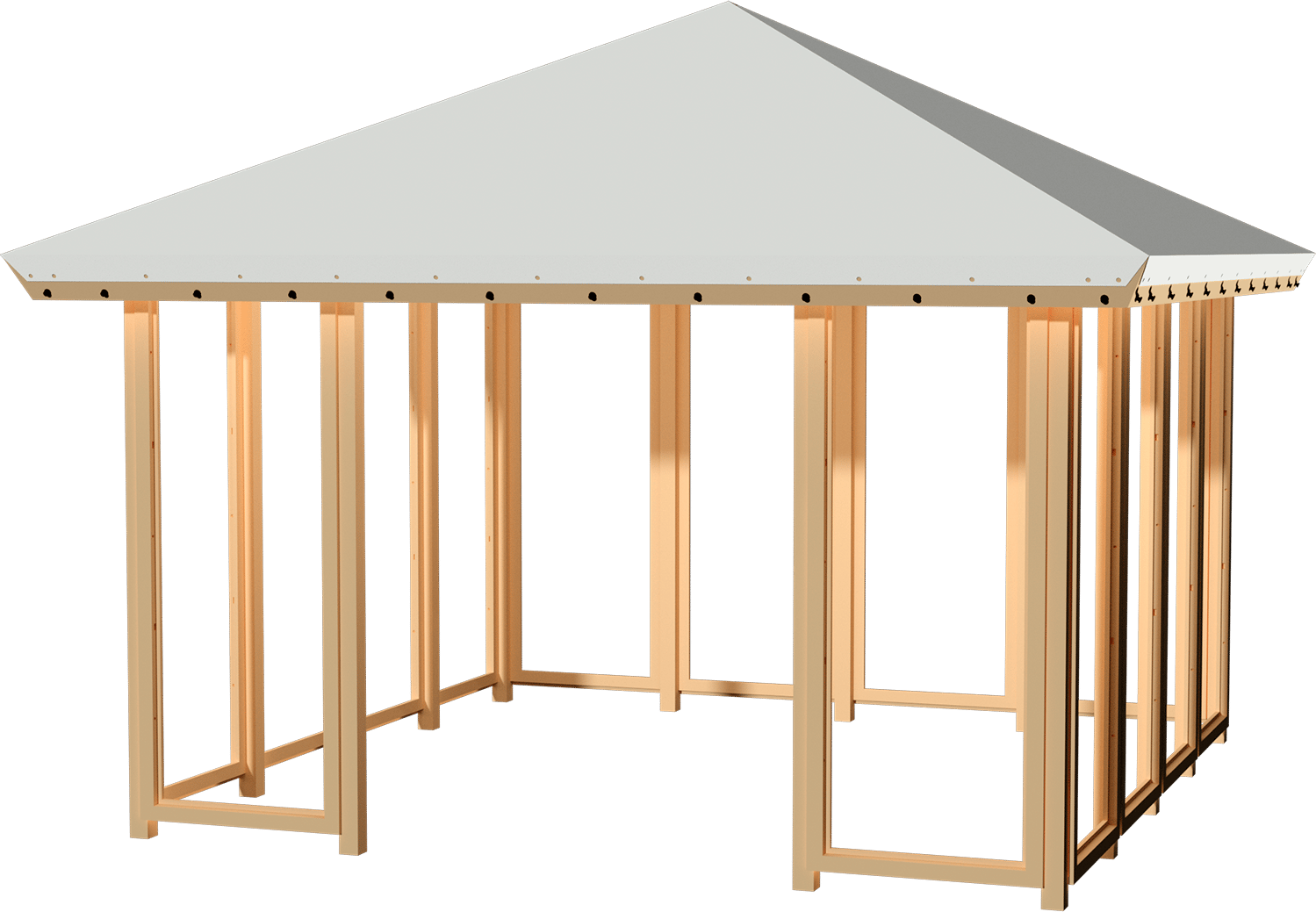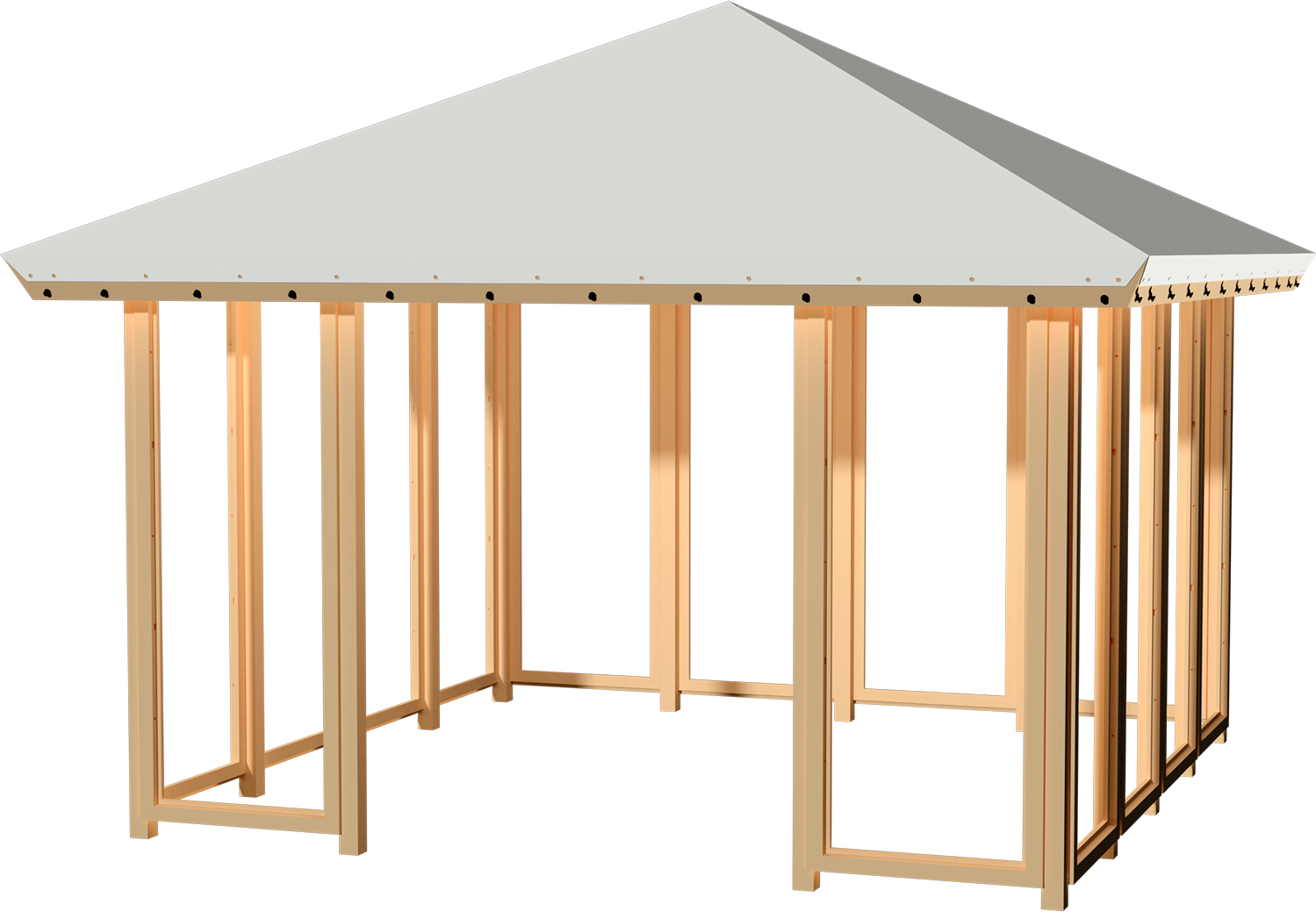 Denne model består af grundsæt og pavillonelementer til at lukke 3½ side, og leveres med hvid tagdug
