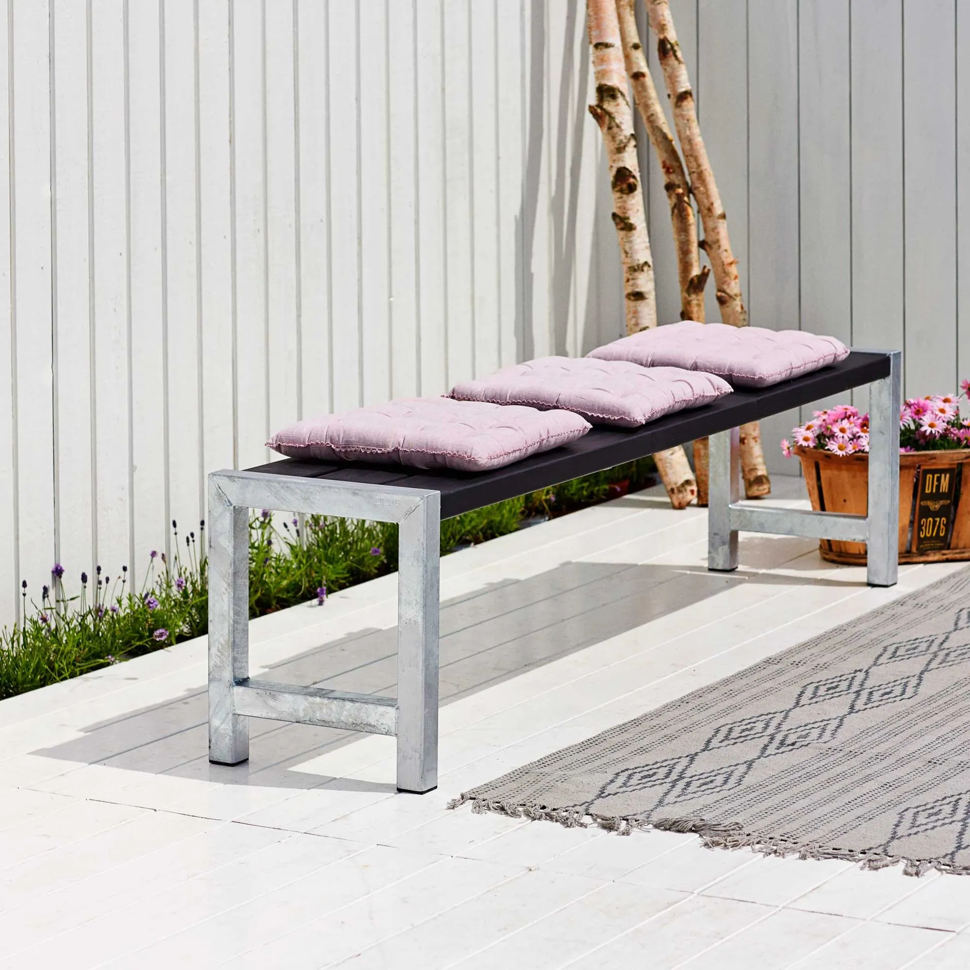 Plankesættet er et moderne og trendy valg til uderummet. Med plankesættet her får du et solidt og lækkert møbelsæt, som holder sig smukt i årevis. Vores designere ønskede at tilføre et moderne udtryk til det klassiske plankesæt – derfor har møblerne fået det kantede og kraftige stel af varmgalvaniseret stål.