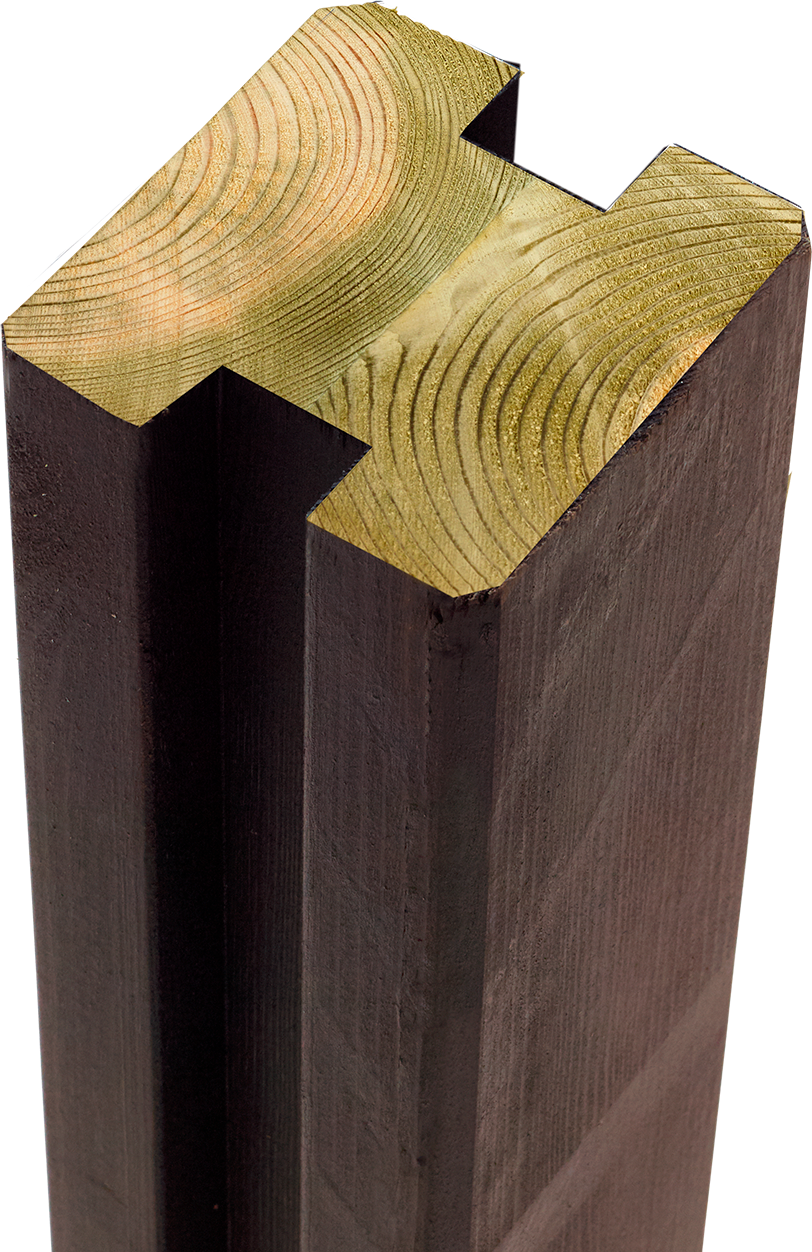 Når du vælger omlimede stolper, får du en FSC-mærket stolpe, der er produceret af fyrretræ – trykimprægneret NTR klasse A, hvilket betyder, at den er beregnet til nedgravning. Stolpen er sammenlimet af to stykker træ for at mindske revnedannelser og vridning samt sikre styrke og formstabilitet.