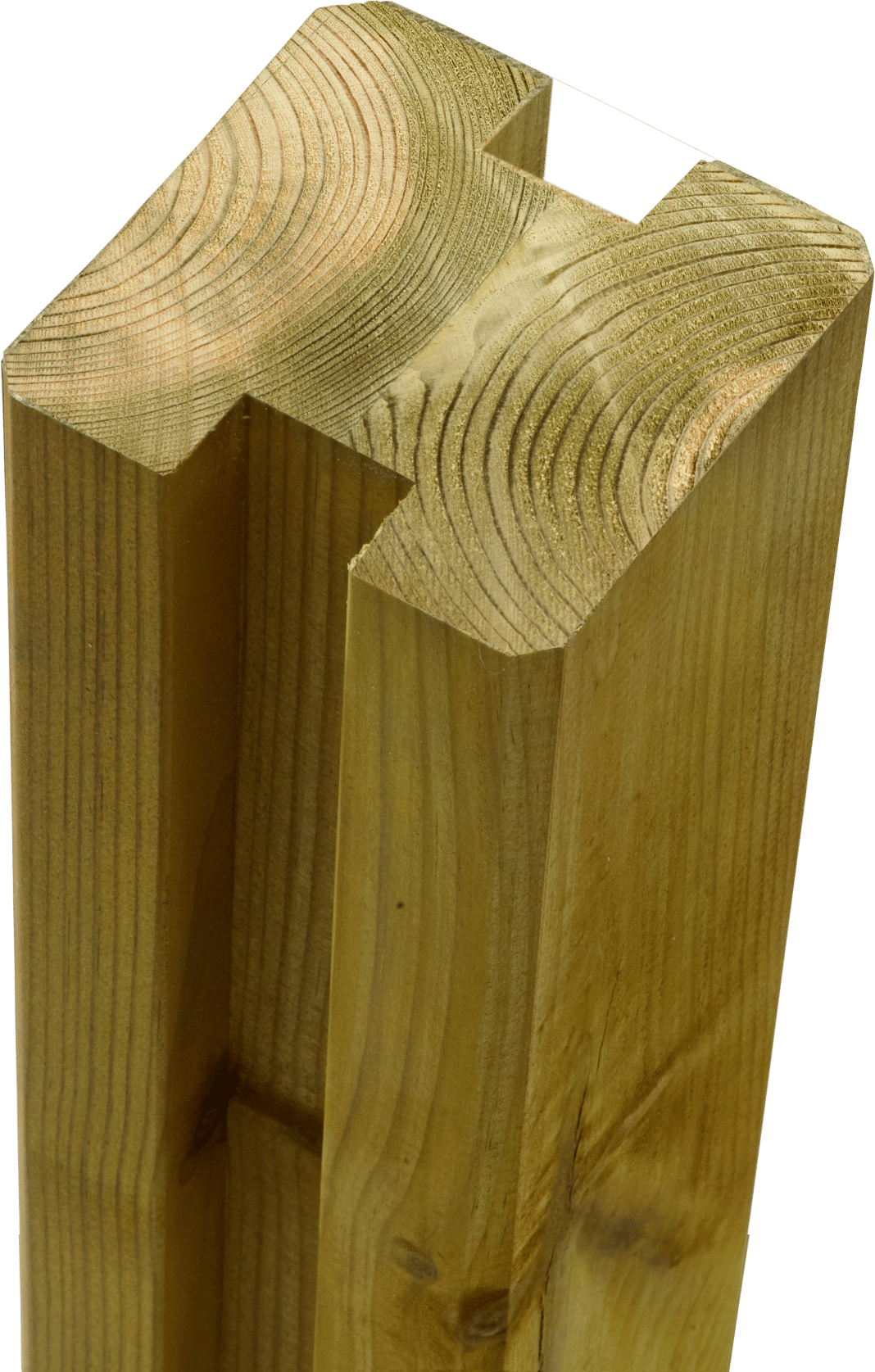 Når du vælger omlimede stolper, får du en FSC-mærket stolpe, der er produceret af fyrretræ – trykimprægneret NTR klasse A, hvilket betyder, at den er beregnet til nedgravning. Stolpen er sammenlimet af to stykker træ for at mindske revnedannelser og vridning samt sikre styrke og formstabilitet.