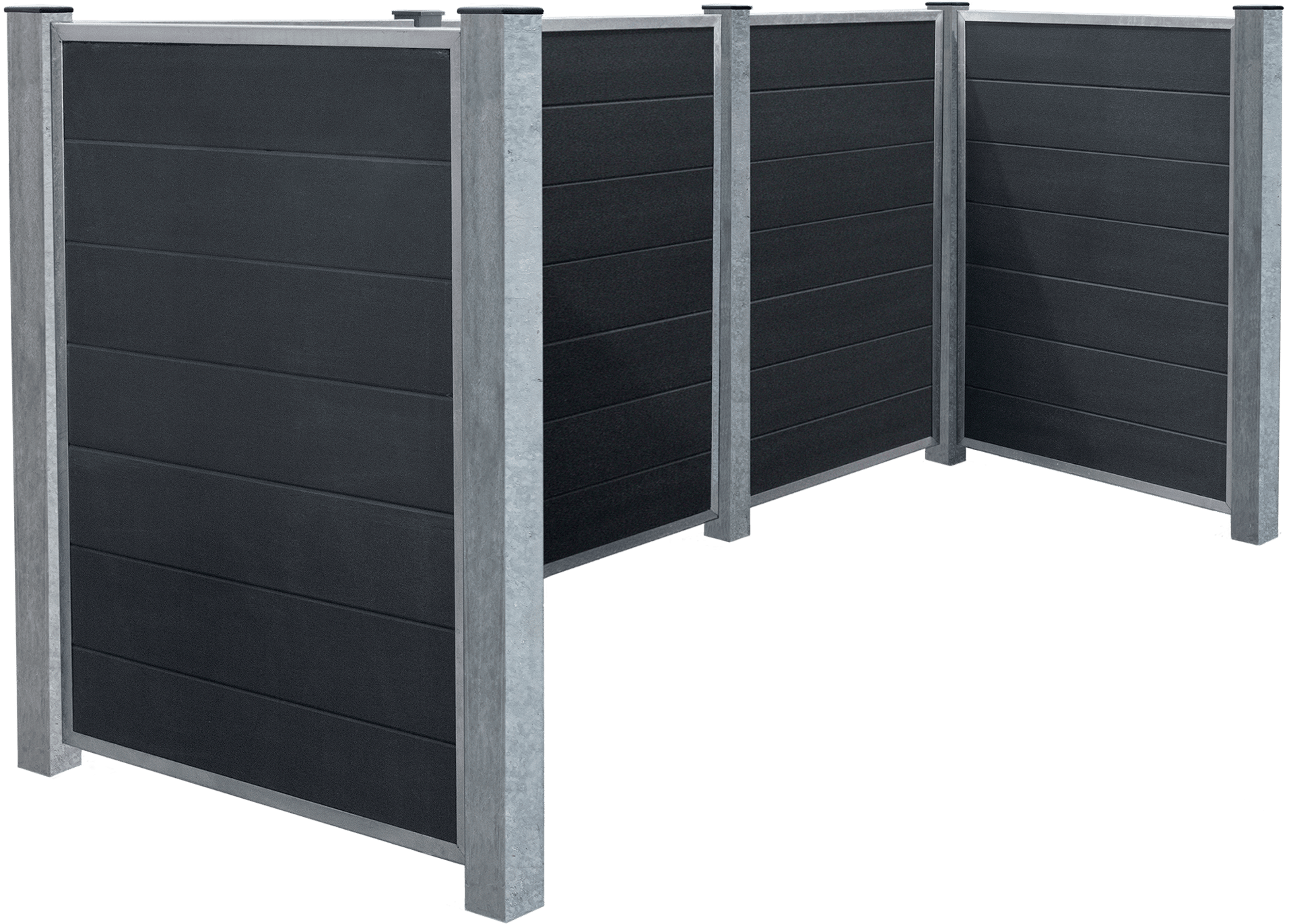 Futura Renovationsskjulet er bygget op af planker i skifergrå komposit.