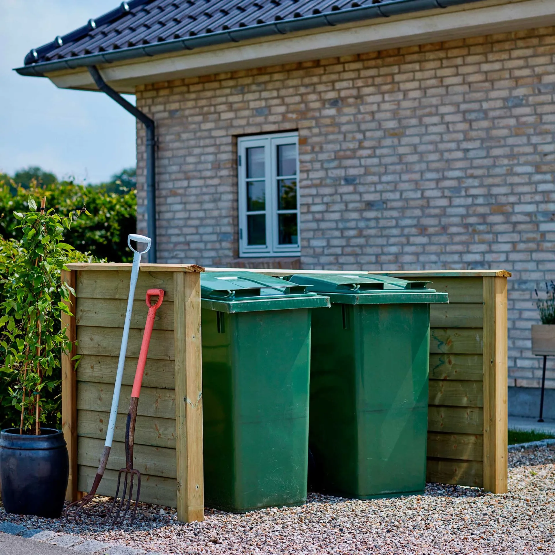 Klink Profil Renovationsskjulet er bygget op af hegnselementer fra PLUS Klink Profilhegn-serien, hvilket giver dig mulighed for at bygge videre på renovationsskjulet, så det passer til netop dit behov og ønsker.