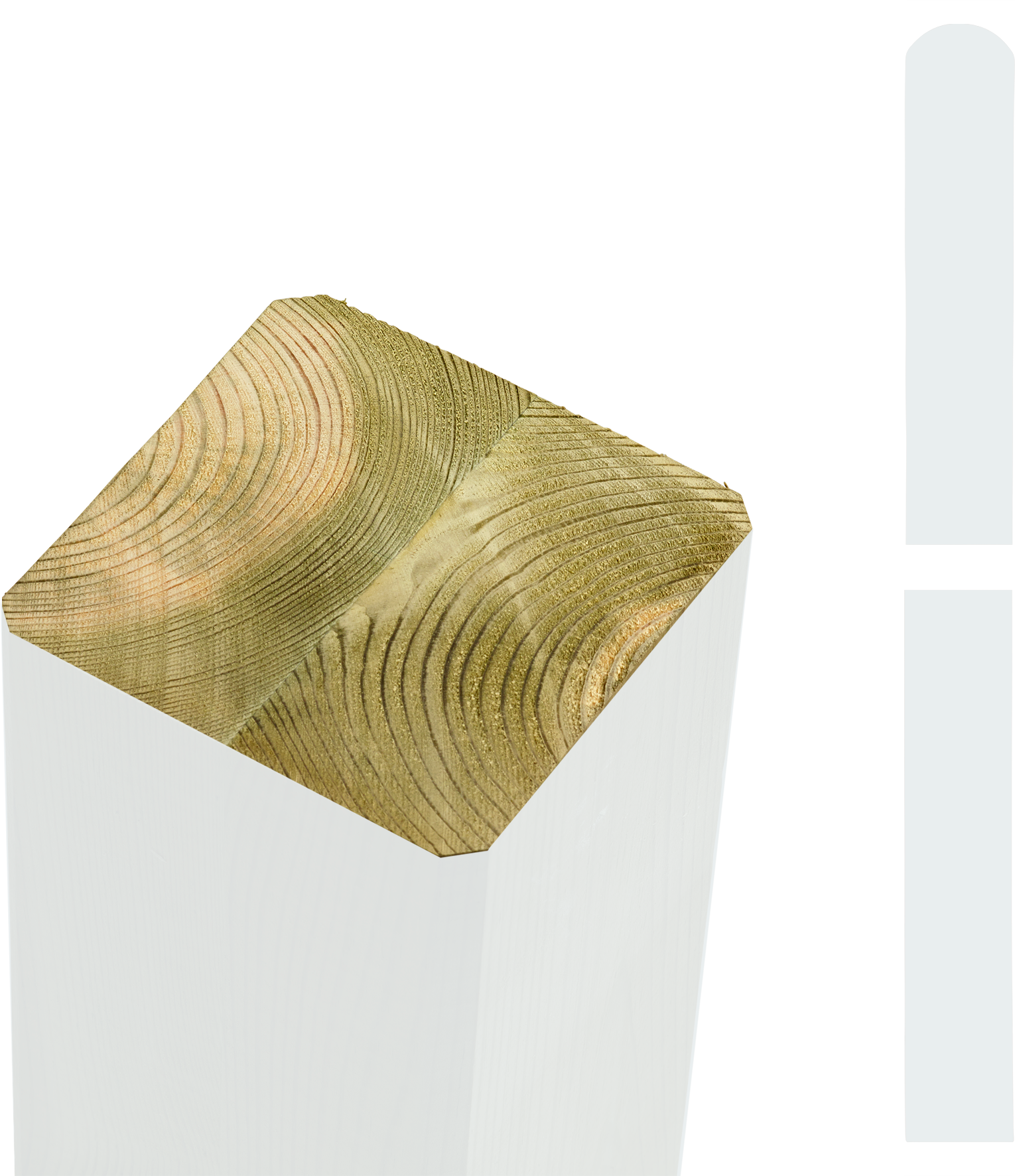Når du vælger omlimede stolper, får du en FSC-mærket stolpe, der er produceret af fyrretræ – trykimprægneret NTR klasse A, hvilket betyder, at den er beregnet til nedgravning. Stolpen er sammenlimet af to stykker træ for at mindske revnedannelser og vridning samt sikre styrke og formstabilitet.