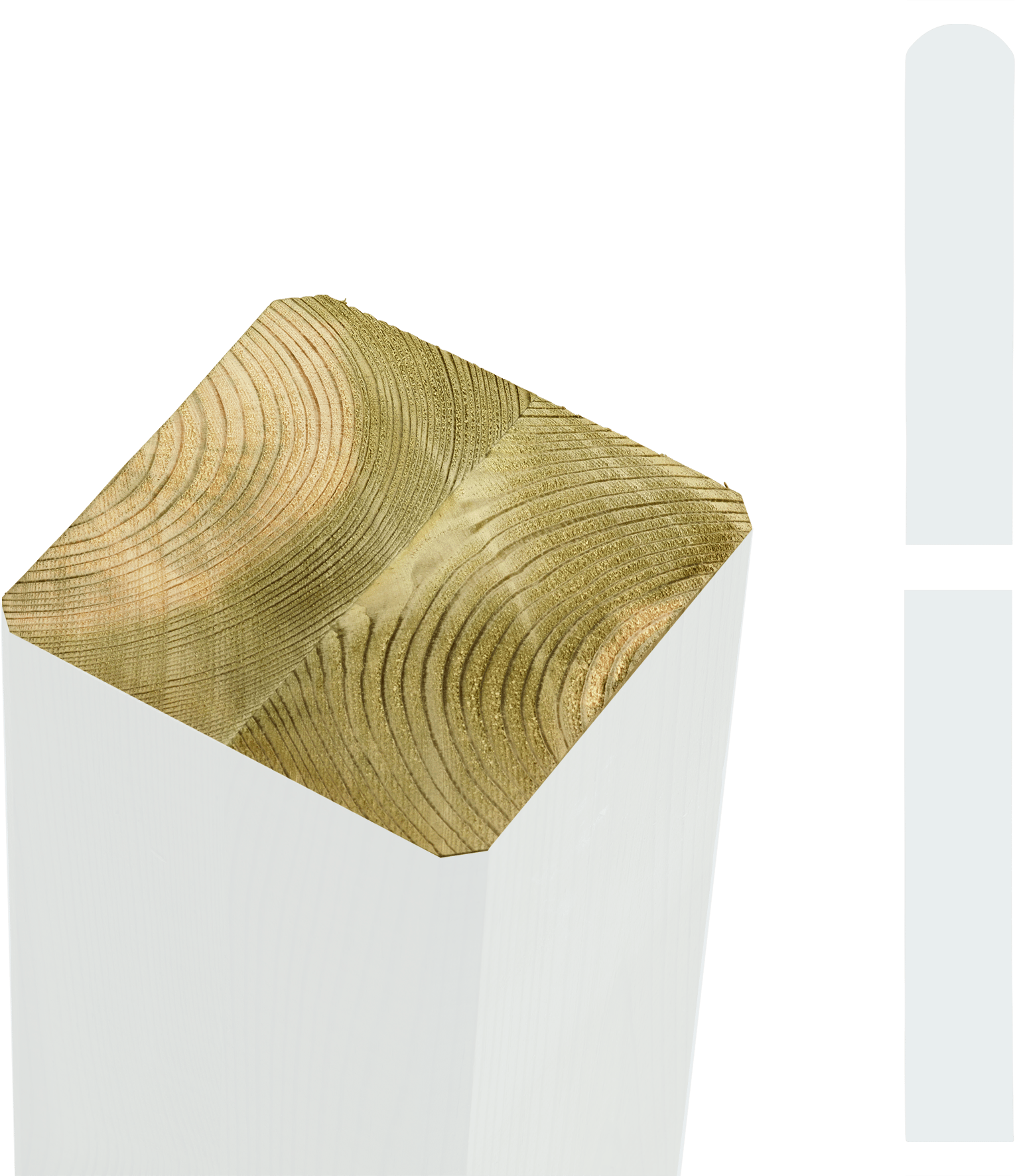 Når du vælger omlimede stolper, får du en FSC-mærket stolpe, der er produceret af fyrretræ – trykimprægneret NTR klasse A, hvilket betyder, at den er beregnet til nedgravning. Stolpen er sammenlimet af to stykker træ for at mindske revnedannelser og vridning samt sikre styrke og formstabilitet.