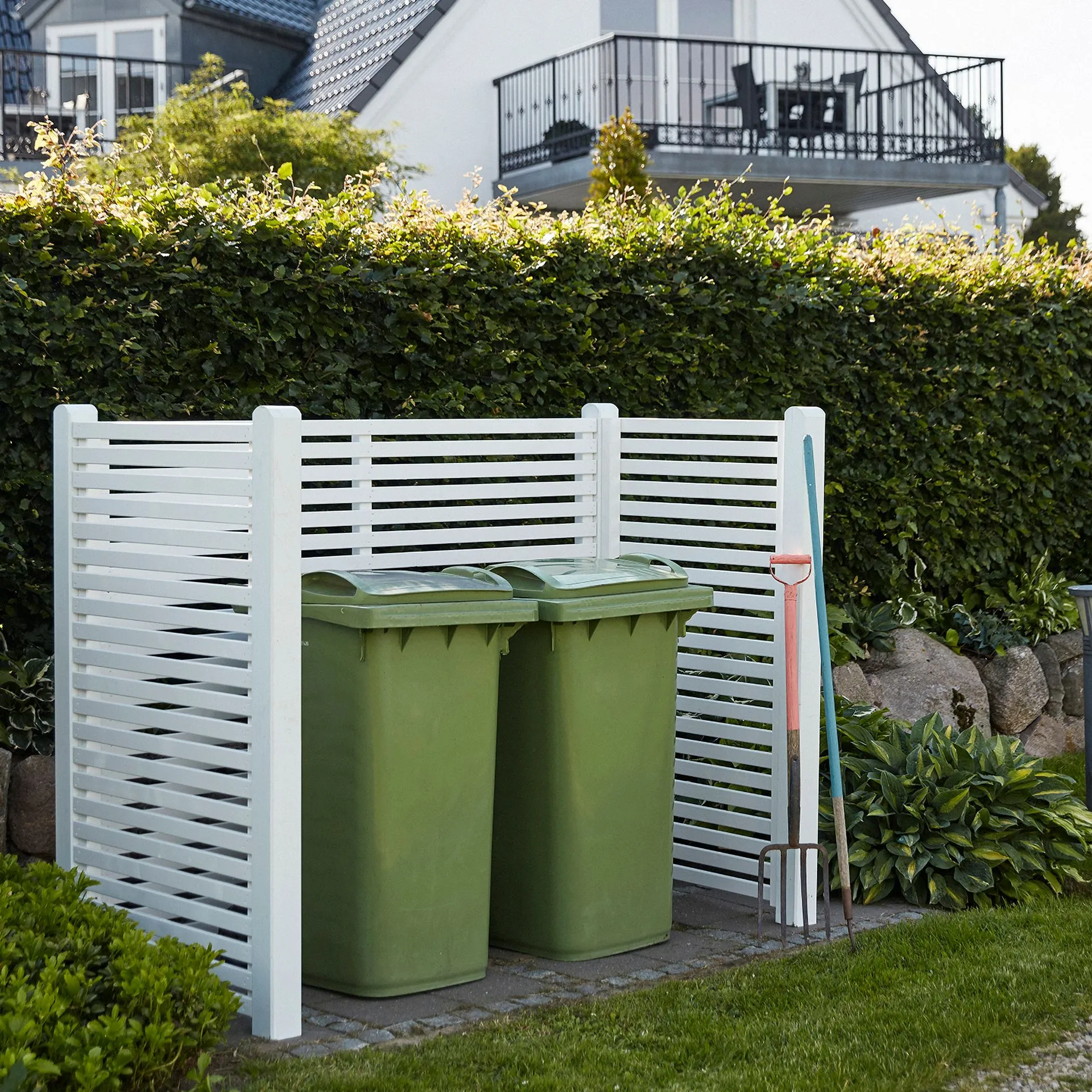 Tokyo Renovationsskjulet er bygget op af hegnselementer fra Tokyo-serien, hvilket giver dig mulighed for at bygge videre på renovationsskjulet, så det passer til netop dit behov og ønsker.
