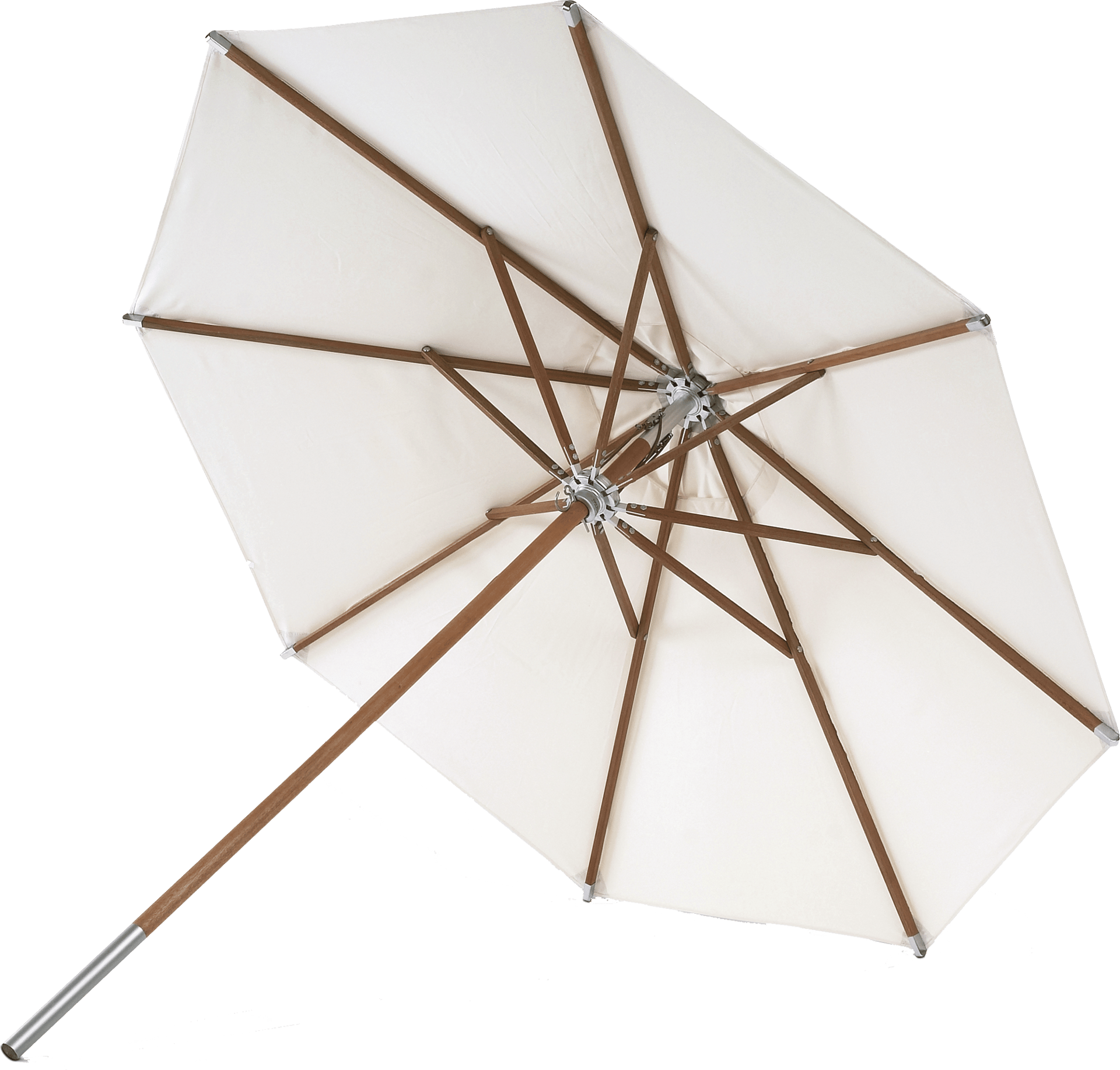 Parasollens kraftige dug og parasollens ribber samles i meget stærke lommer, der øger parasollens holdbarhed.