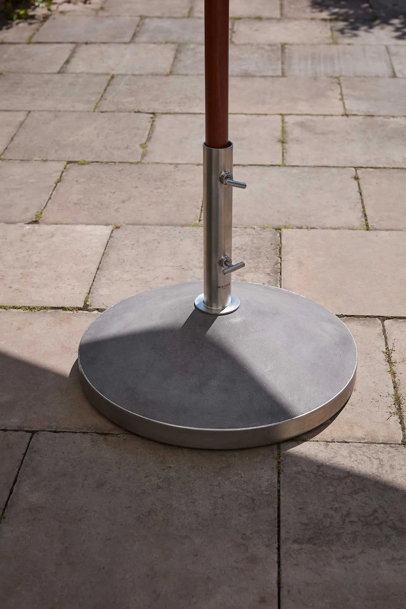 Capri parasolfod er fremstillet af beton og er kegleformet, så regnvandet altid vil løbe af automatisk. Stålrammen har bløde, afrundede kanter, så den ikke ridser, når foden flyttes rundt, og så den er rar og blød at røre ved. Capri Parasolfod fås i to st