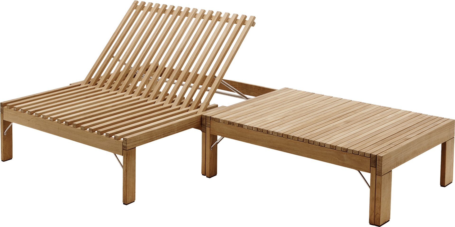 Riviera Lounge er en videreudvikling af den oprindelige Riviera-solseng, hvor sengen kan trækkes længere. Her foregår trækket på den modsatte led, så loungestolene både kan fungere som stol og bord, en samlet sofa eller et plant podie, du kan bruge til ophold eller som seng. MATERIALE: TEAKDIMENSION (L X B X H): 203 x 67,5 x 32,5.