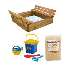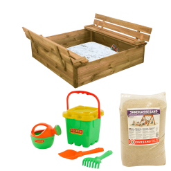 Nordic Play SANDKASSE MED BÆNK OG LÅG 120X120CM TRYKIMPRÆGNERET INKL 240 KG SAND OG GRØN STRANDSÆT