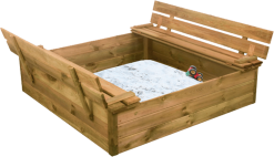 Nordic Play SANDKASSE MED BÆNK OG LÅG 120X120CM TRYKIMPRÆGNERET INKL 240 KG SAND