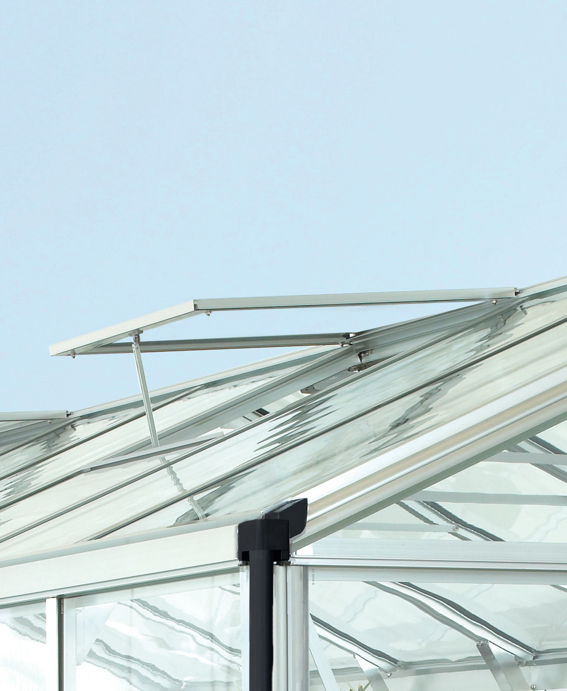 Det ekstra ventilationsvindue monteres i tagryggen på dit Vitavia drivhus. Der kan monteres et ventilationsvindue i hver tagsektion. Ventilationsvinduet giver øget ventilation og hjælper til med at holde temperaturen nede inde i drivhuset. Ekstra ventilationsvinduer leveres uden glas – anvend et af de eksisterende glas, der skal tilskæres i størrelsen 600 x 544 mm.